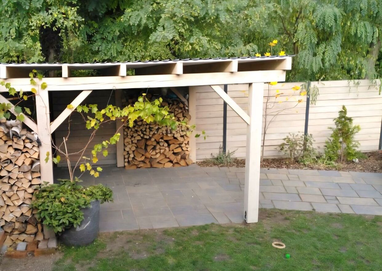 Na terenie znajduje się także wiata drewniana na samochód.
