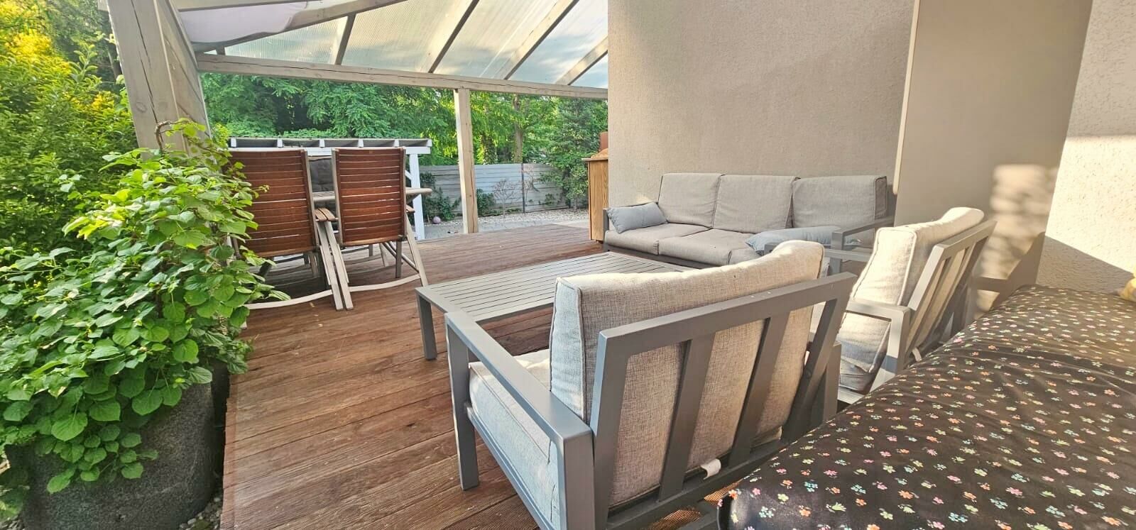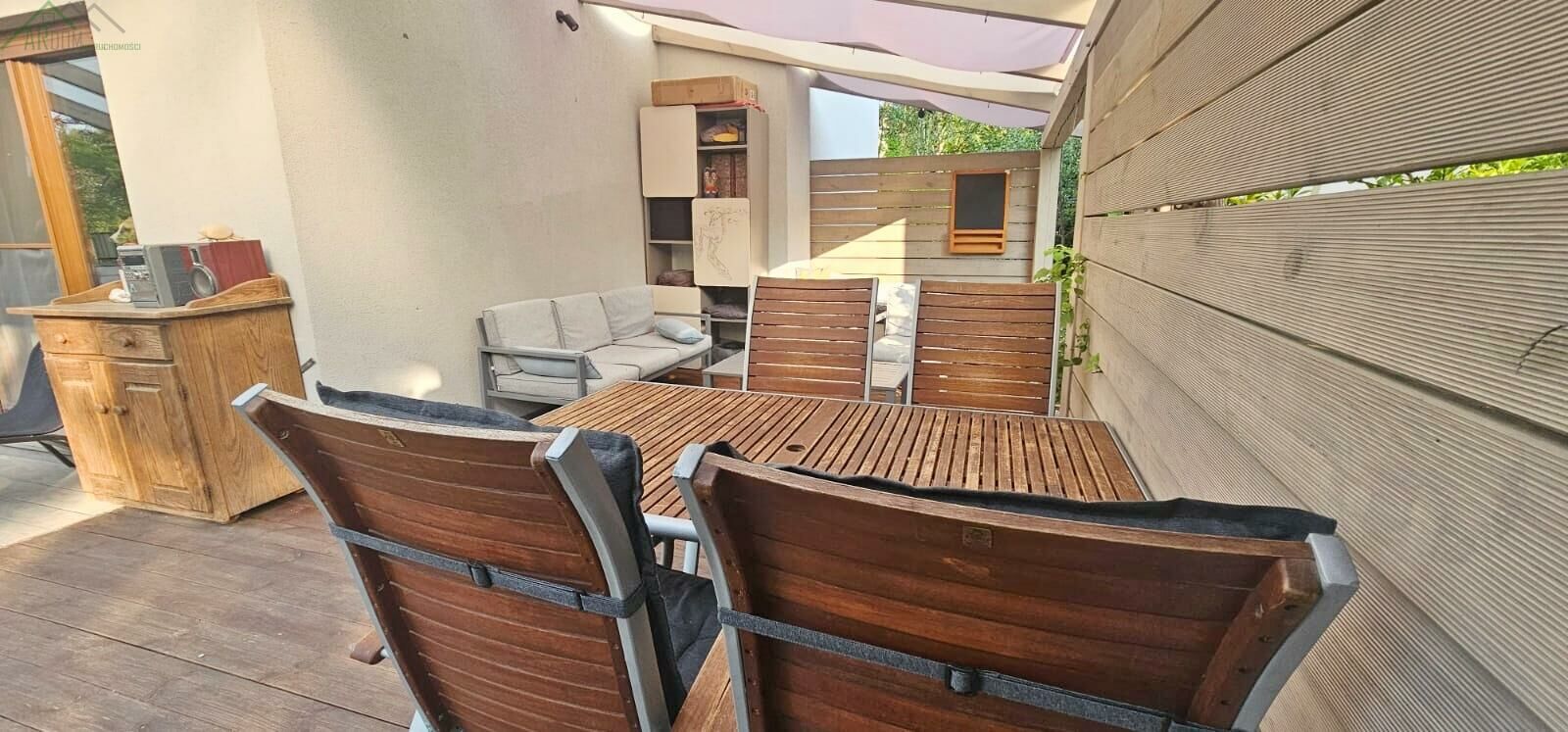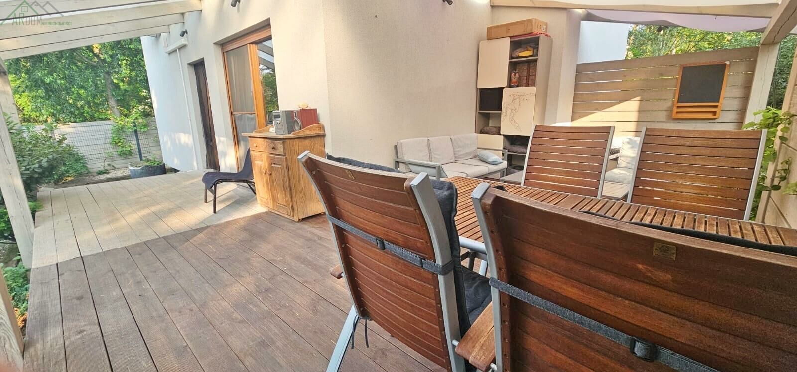 Na powierzchni 412 m znajduje się przestronny, zadaszony taras o powierzchni 35 m idealny na relaks i spotkania na świeżym powietrzu.