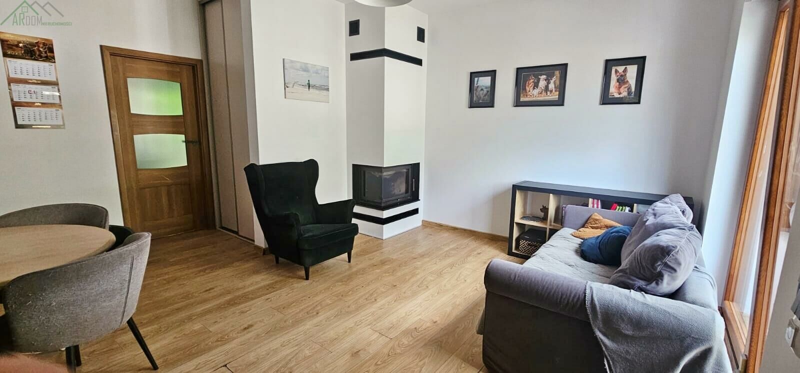 a w domu znajdziesz także kominek, klimatyzację z funkcją chłodzenia i ogrzewania oraz grzejniki kanałowe w każdym pokoju,
